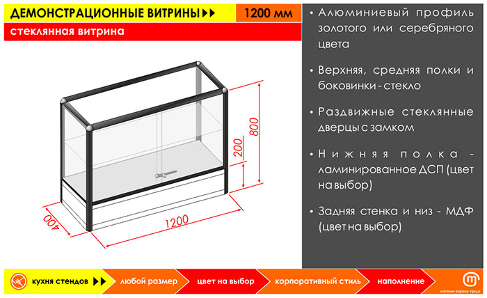 Стеклянная витрина, 1200 мм в Твери купить