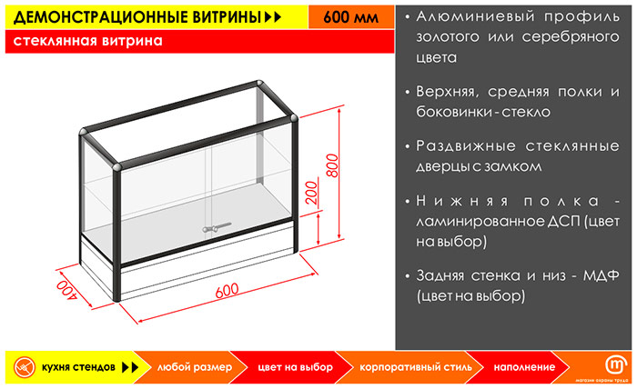 Стеклянная витрина, 600 мм в Твери купить
