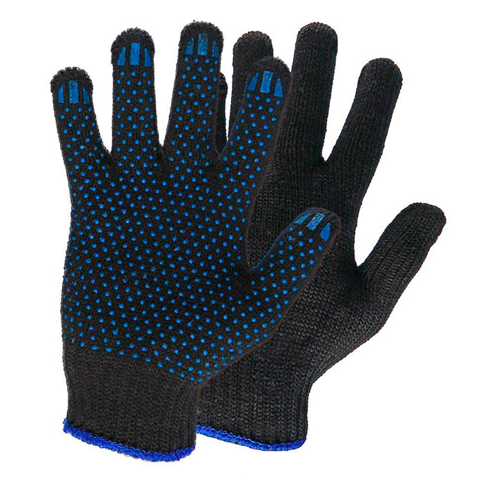 Перчатки Х/Б (5 нитей) черные с ПВХ "Точка" в Твери купить