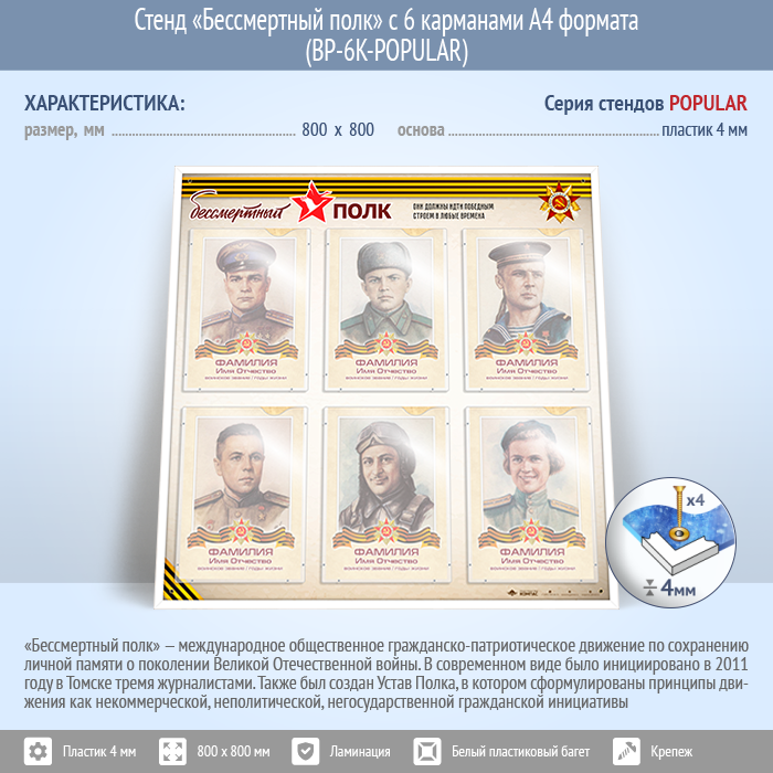 Стенд «Бессмертный полк» с 6 карманами А4 формата (BP-6K)