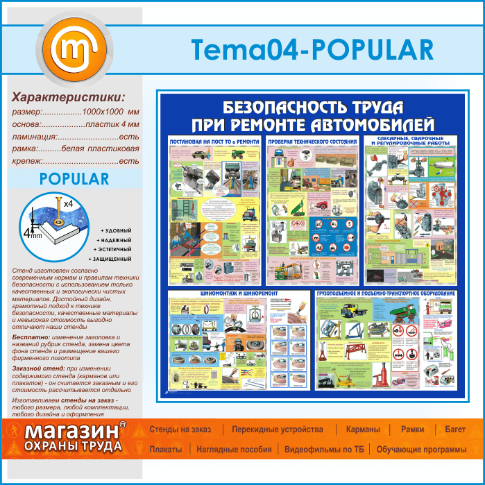 Стенд «Безопасность труда при ремонте автомобилей» (TM-04-POPULAR)