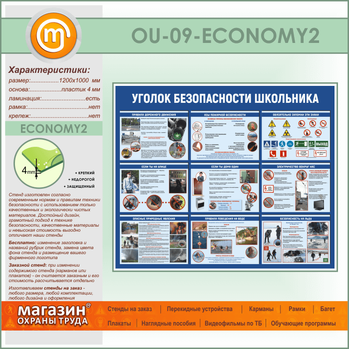 Стенд «Уголок безопасности школьника» (OU-09-ECONOMY2) в Твери купить