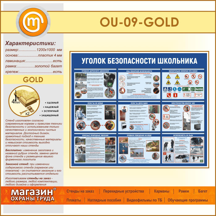 Стенд «Уголок безопасности школьника» (OU-09-GOLD) в Твери купить