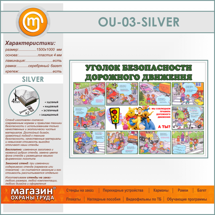 Стенд «Уголок безопасности дорожного движения» (OU-03-SILVER) в Твери купить