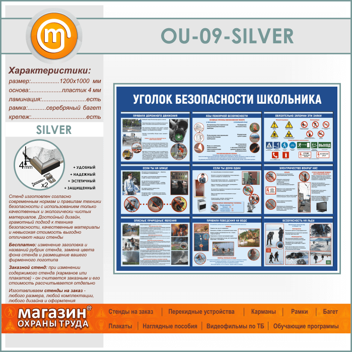 Стенд «Уголок безопасности школьника» (OU-09-SILVER) в Твери купить