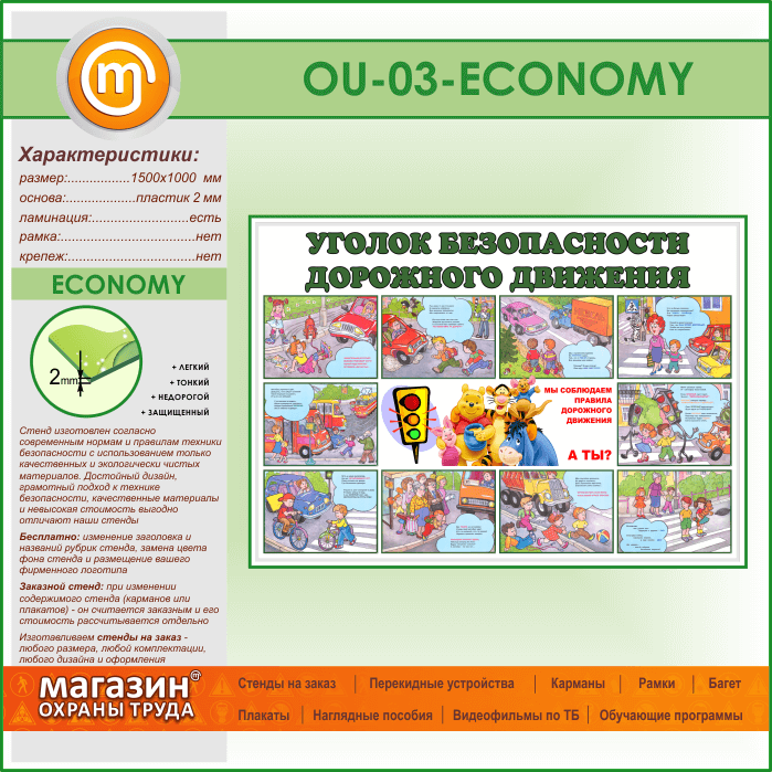 Стенд «Уголок безопасности дорожного движения» (OU-03-ECONOMY) в Твери купить