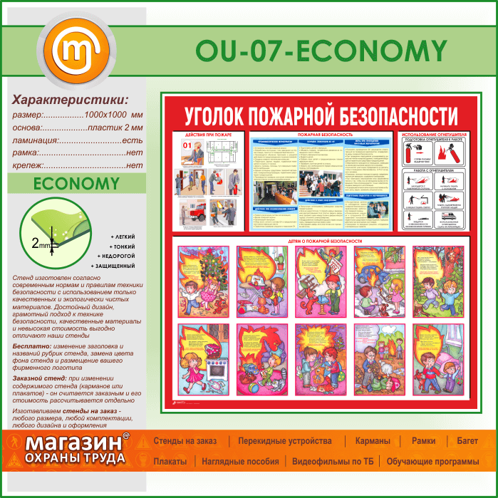 Стенд «Уголок пожарной безопасности» (OU-07-ECONOMY) в Твери купить