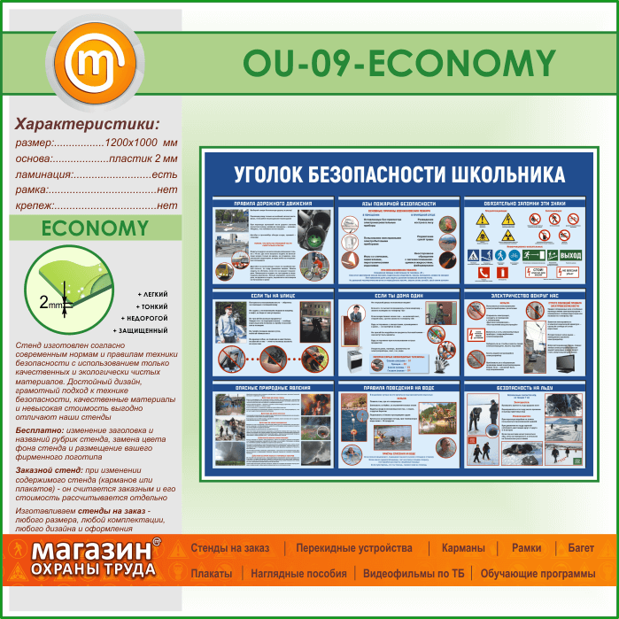 Стенд «Уголок безопасности школьника» (OU-09-ECONOMY) в Твери купить