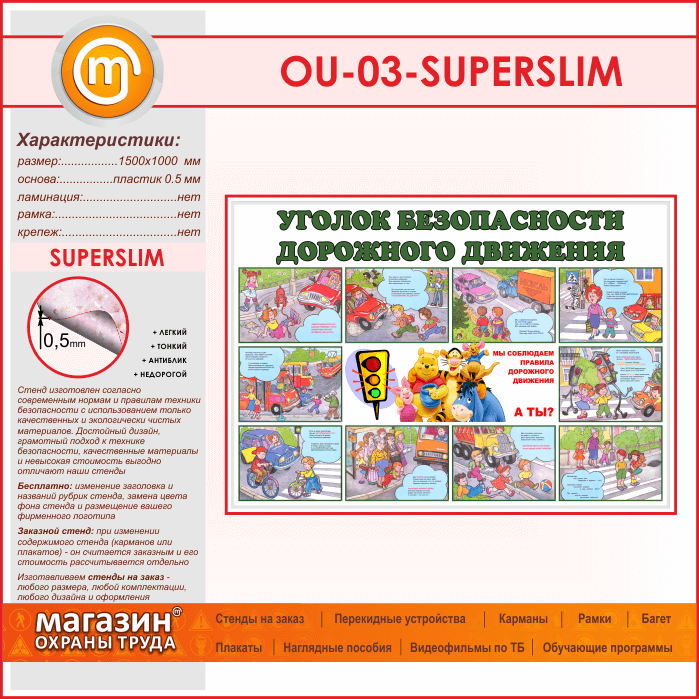 Стенд «Уголок безопасности дорожного движения» (OU-03-SUPERSLIM) в Твери купить