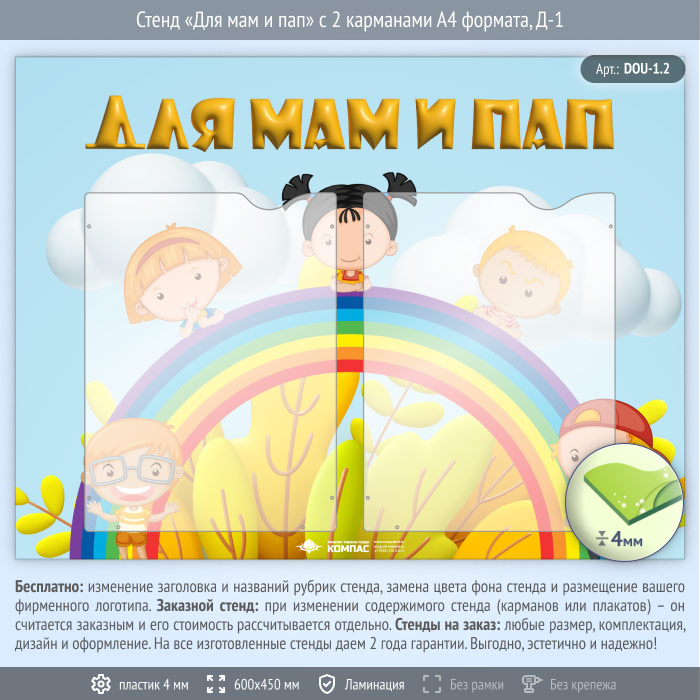 Стенд «Для мам и пап» с 2 карманами А4 формата (DOU-1.2) в Твери купить