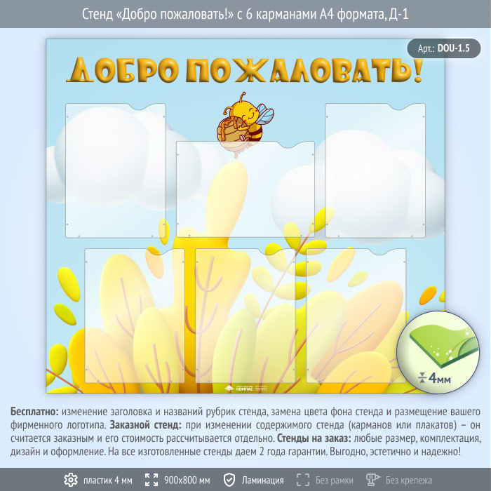 Стенд «Добро пожаловать!» с 6 карманами А4 формата (DOU-1.5) в Твери купить