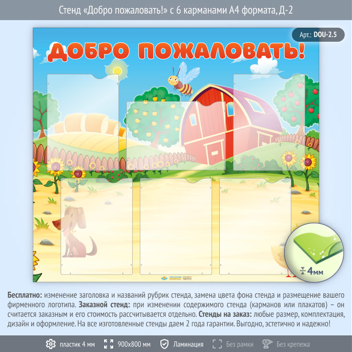 Стенд «Добро пожаловать!» с 6 карманами А4 формата (DOU-2.5) в Твери купить