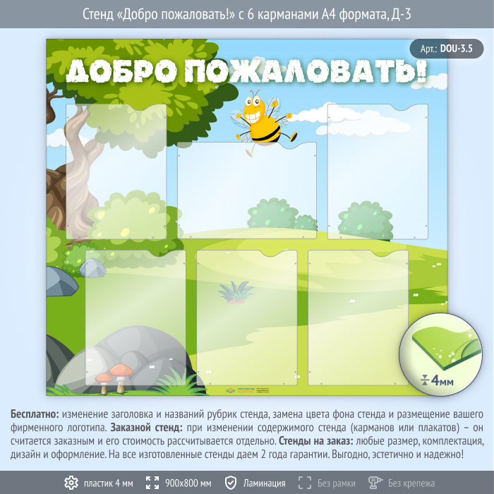 Стенд «Добро пожаловать!» с 6 карманами А4 формата (DOU-3.5) в Твери купить