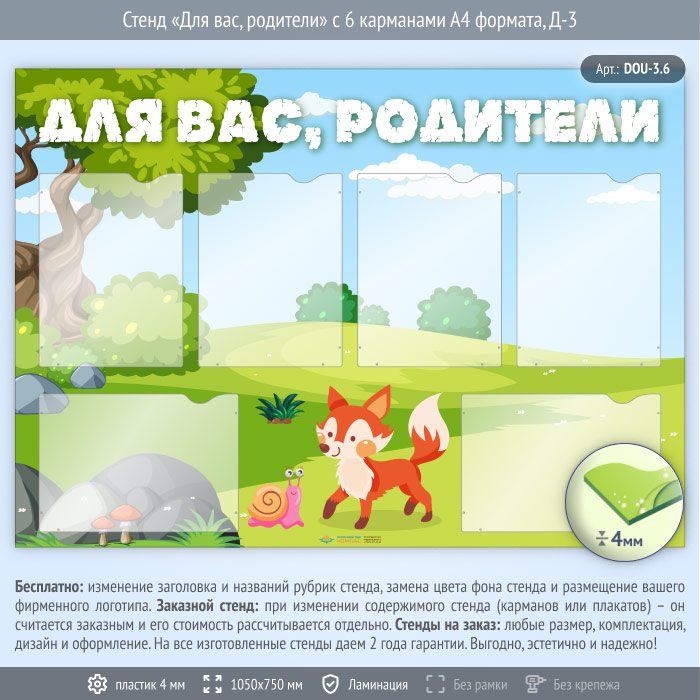 Стенд «Для вас, родители» с 6 карманами А4 формата (DOU-3.6) в Твери купить