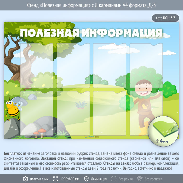 Стенд «Полезная информация» с 8 карманами А4 формата (DOU-3.7) в Твери купить