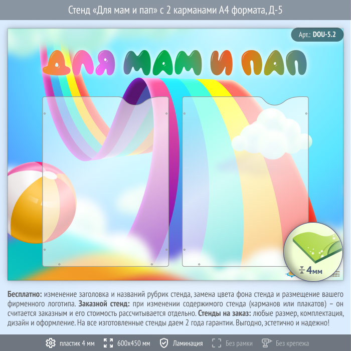 Стенд «Для мам и пап» с 2 карманами А4 формата (DOU-5.2) в Твери купить