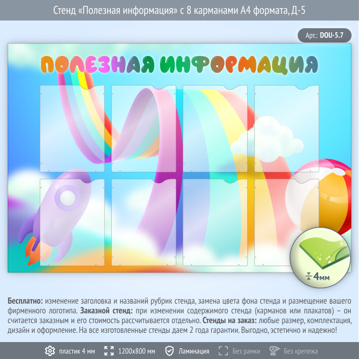 Стенд «Полезная информация» с 8 карманами А4 формата (DOU-5.7) в Твери купить