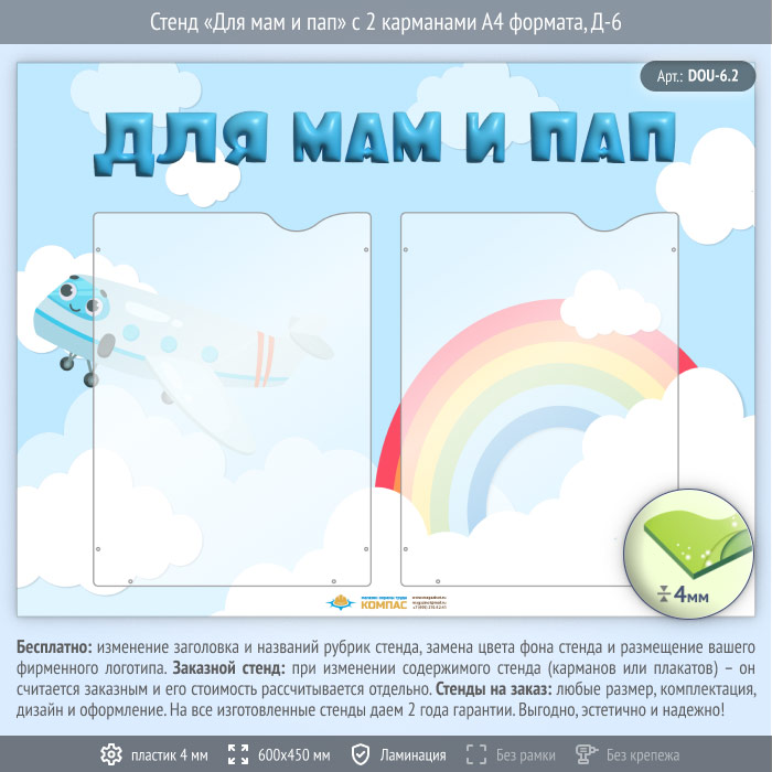 Стенд «Для мам и пап» с 2 карманами А4 формата (DOU-6.2) в Твери купить