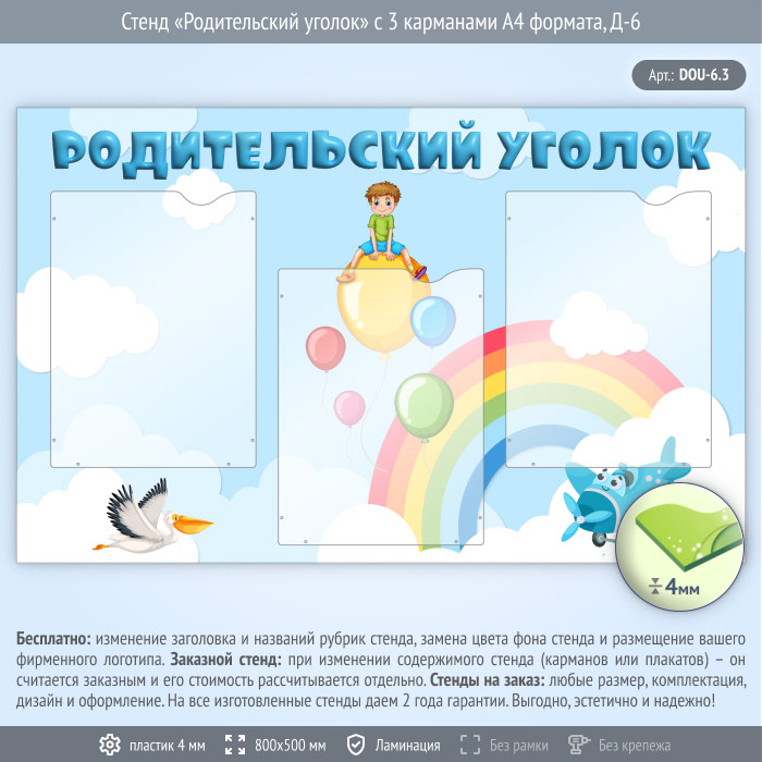 Стенд «Родительский уголок» с 3 карманами А4 формата (DOU-6.3) в Твери купить
