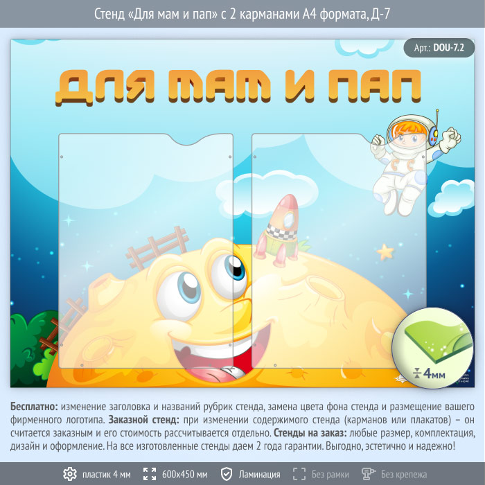 Стенд «Для мам и пап» с 2 карманами А4 формата (DOU-7.2) в Твери купить