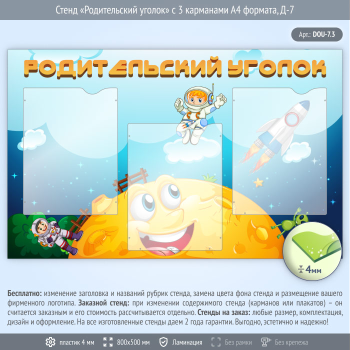 Стенд «Родительский уголок» с 3 карманами А4 формата (DOU-7.3) в Твери купить