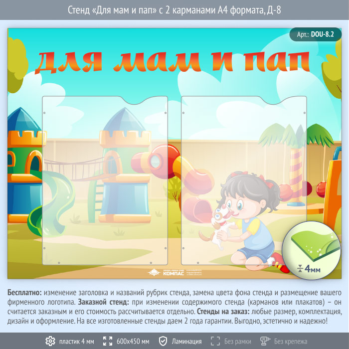 Стенд «Для мам и пап» с 2 карманами А4 формата (DOU-8.2) в Твери купить