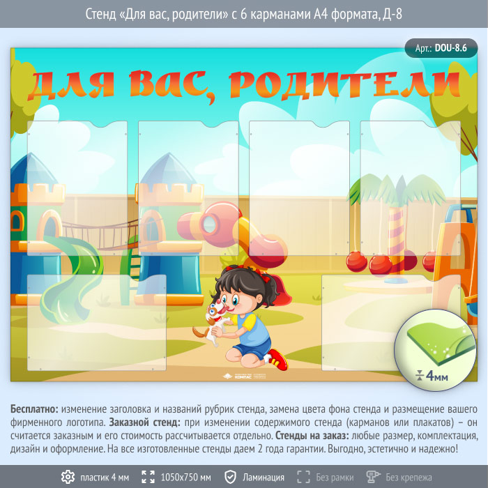 Стенд «Для вас, родители» с 6 карманами А4 формата (DOU-8.6) в Твери купить