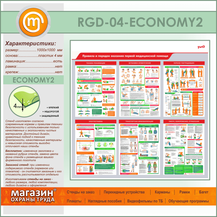 Стенд «Правила и порядок оказания первой медицинской помощи» (RGD-04-ECONOMY2) в Твери купить