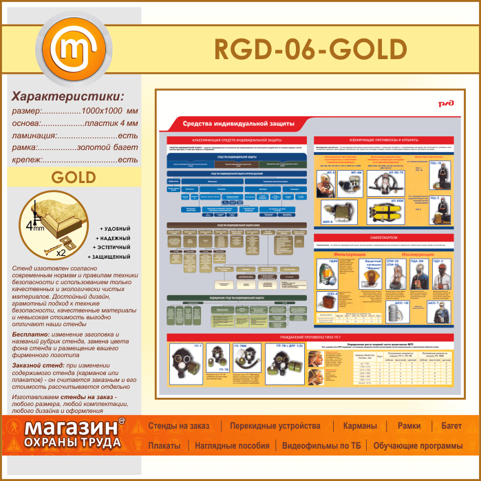 Стенд «Средства индивидуальной защиты» (RGD-06-GOLD) в Твери купить