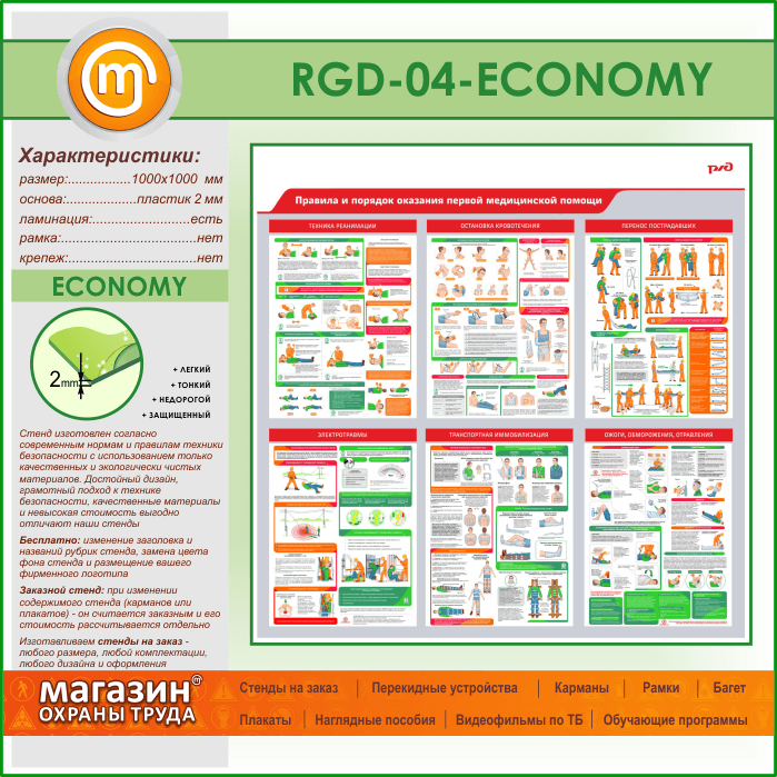 Стенд «Правила и порядок оказания первой медицинской помощи» (RGD-04-ECONOMY) в Твери купить