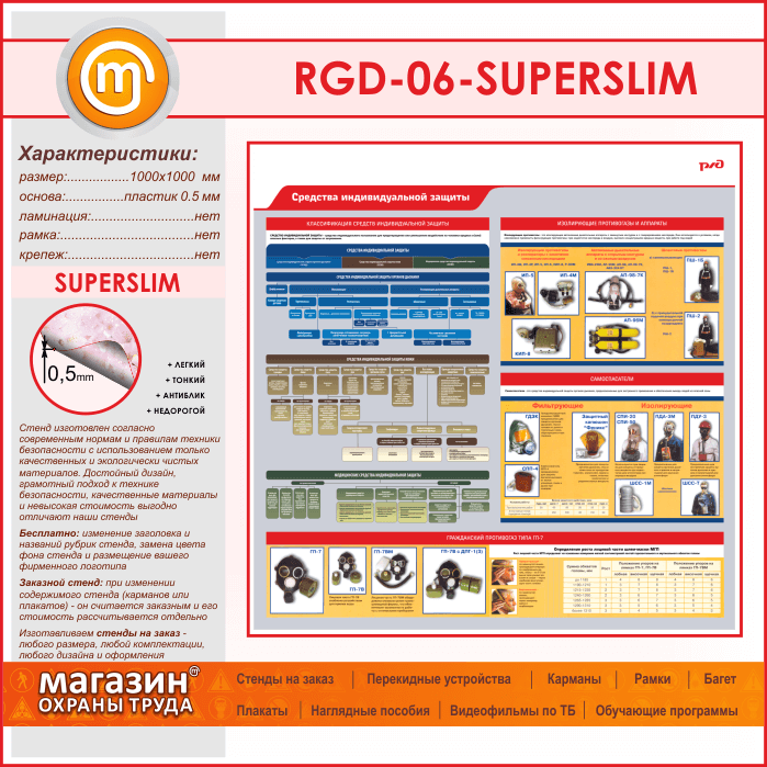 Стенд «Средства индивидуальной защиты» (RGD-06-SUPERSLIM) в Твери купить