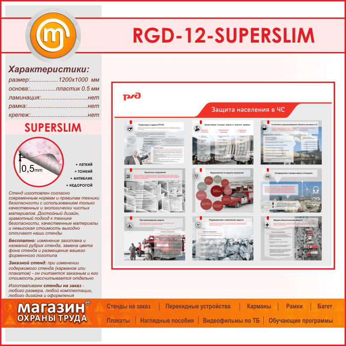 Стенд «Защита населения в ЧС» (RGD-12-SUPERSLIM) в Твери купить