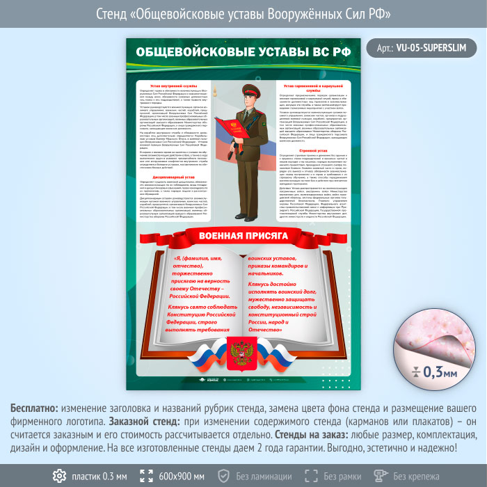 Стенд «Общевойсковые уставы Вооружённых Сил РФ» (VU-05-SUPERSLIM) в Твери купить