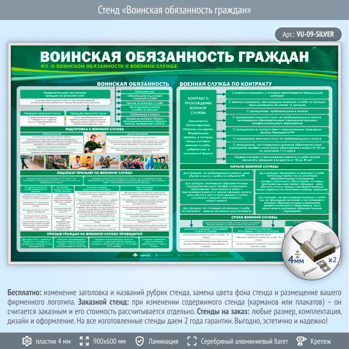 Стенд «Воинская обязанность граждан» (VU-09-SILVER) в Твери купить