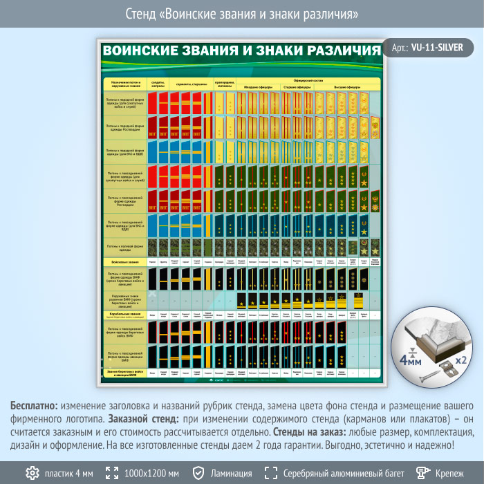 Стенд «Воинские звания и знаки различия» (VU-11-SILVER) в Твери купить