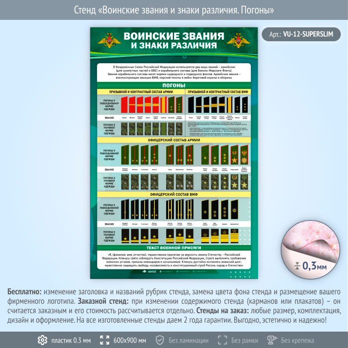 Стенд «Воинские звания и знаки различия. Погоны» (VU-12-SUPERSLIM) в Твери купить