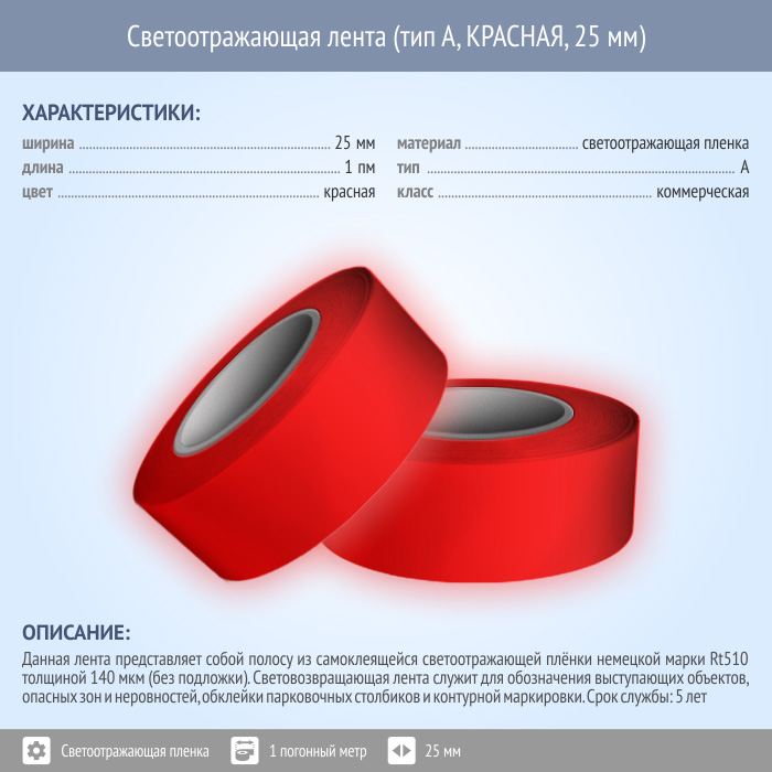 Светоотражающая однородная лента (тип А, КРАСНАЯ, 25 мм х 1 п.м.) в Твери купить