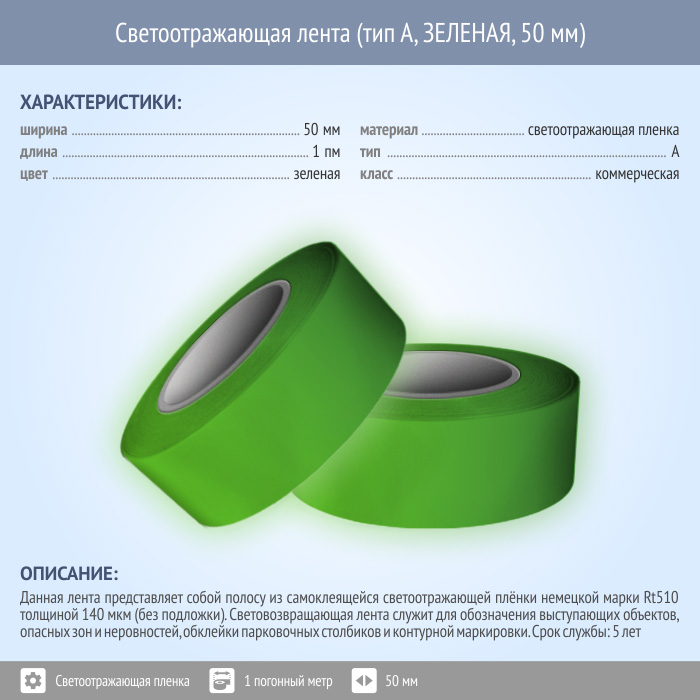 Светоотражающая однородная лента (тип А, ЗЕЛЕНАЯ, 50 мм х 1 п.м.) в Твери купить