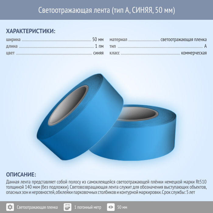 Светоотражающая однородная лента (тип А, СИНЯЯ, 50 мм х 1 п.м.) в Твери купить