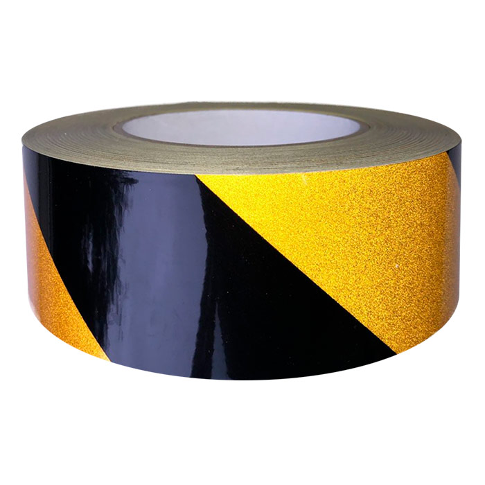 Светоотражающая сигнальная лента (тип А, ЧЕРНО-ЖЕЛТАЯ 45°, 100 мм х 45,7 м) в Твери купить