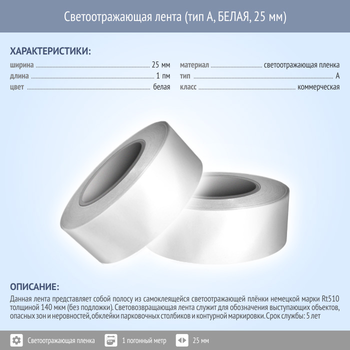 Светоотражающая однородная лента (тип А, БЕЛАЯ, 25 мм х 1 п.м.) в Твери купить