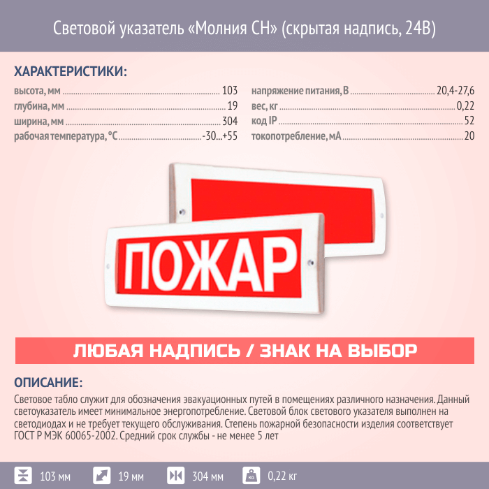 Световой указатель Молния СН (скрытая надпись, 24В) в Твери купить