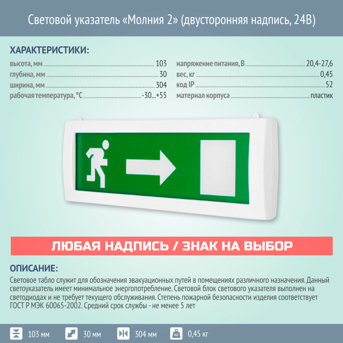 Световой указатель Молния 2 (двусторонняя надпись, 24В) в Твери купить