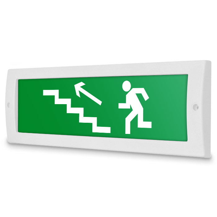 Световое табло «Направление к эвакуационному выходу по лестнице вверх (левосторонний)», Молния (12В) в Твери купить