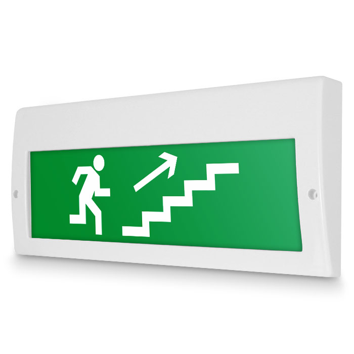 Световое табло «Направление к эвакуационному выходу по лестнице вверх (правосторонний)», Молния (220В РИП) в Твери купить