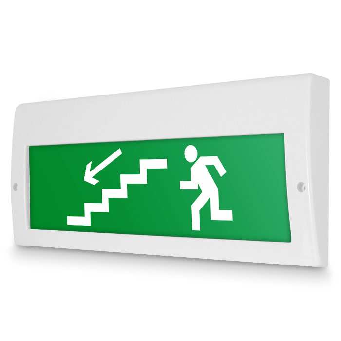 Световое табло «Направление к эвакуационному выходу по лестнице вниз (левосторонний)», Молния (220В РИП) в Твери купить
