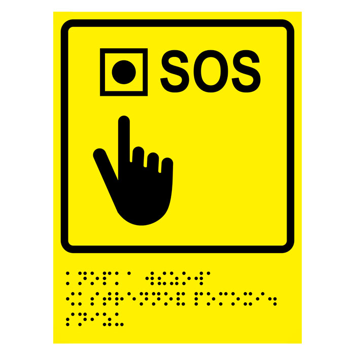 Тактильная пиктограмма «Кнопка вызова экстренной помощи» с азбукой Брайля, ДС66 (полистирол 3 мм, 150х225 мм) в Твери купить