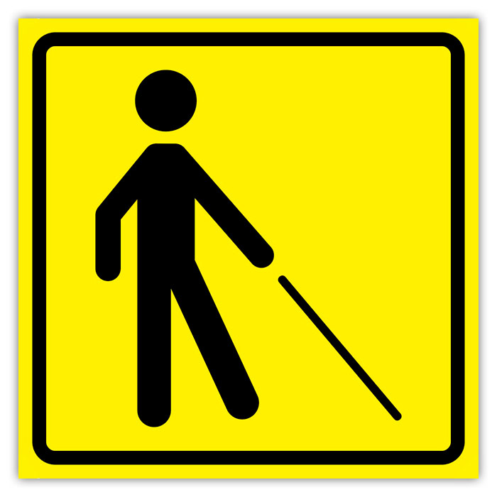 Тактильный предупреждающий знак «Уступите дорогу человеку с белой тростью», ДС77 (полистирол 3 мм, 150х150 мм) в Твери купить
