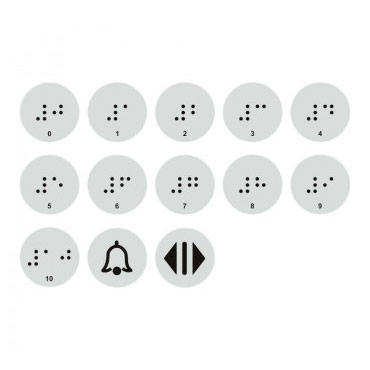 Тактильные наклейки для кнопок лифта с 0 по 10 этаж (набор), ДС95 (пленка, 20х20 мм, серебристый) в Твери купить
