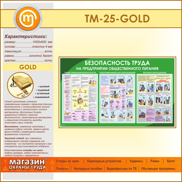 Стенд «Безопасность труда на предприятиях общественного питания» (TM-25-GOLD) в Твери купить